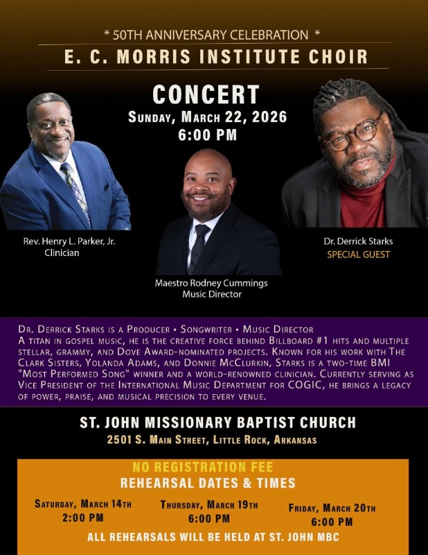 Choir Concert will be held at St. John Baptist Church, 2501 S. Main St., LR
